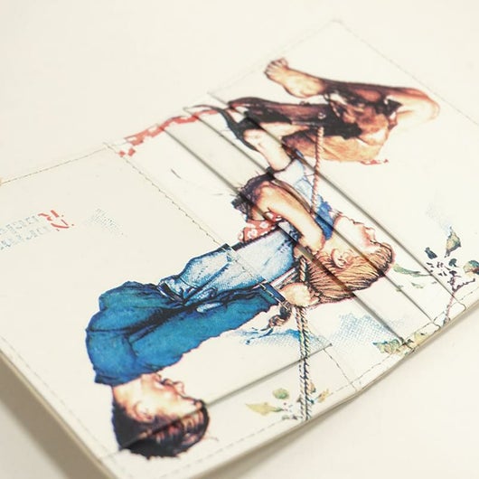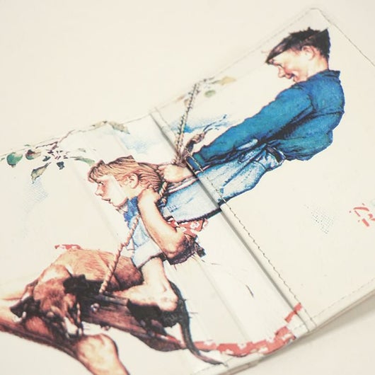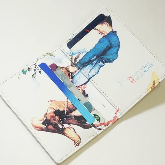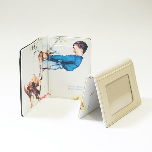 ノーマンロックウェルイラストシリーズ 20世紀のアメリカ合衆国の画家、イラストレーター。軽いタッチでアメリカの市民生活を描き、アメリカでは幅広い大衆的人気をもつ。ニューヨークで生まれ、美術学校を出てから、アメリカ・ボーイスカウト協会の雑誌などに絵を書き始める。彼の絵は1916年から1963年にかけて『サタデー・イーブニング・ポスト』紙の表紙を飾ったが、とりわけ1940年代から1950年代のものが人気があるようです。彼の絵は商業主義的で一部の近代美術批評家からはまじめな画家とは扱われず、イラストレーターと呼ばれることもあるが、アメリカの市民生活の哀歓を巧みに描き、アメリカ人の心を捉えているため、最もアメリカ的な画家のひとりともいえる存在だといいます。 ノーマンロックウェル氏のイラストを、そのままデザインに落とし込んだシリーズ。 開いた面にはカード段が4段あり、裏面にパス窓を配置し定期券や免許書を入れられます。 ノーマンロックウェルらしい楽し気な雰囲気の絵柄がハッピーな気分に。プレゼントにもおススメです。