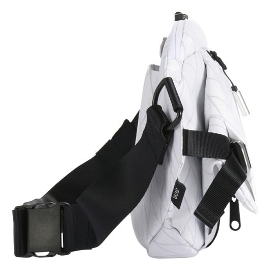 マチが拡張する新形状のスリングバッグ。フロントポケットの拡張&ダブルアクセス機能でふだんは薄マチ、に持つが増えれば大容量に。ON/OFF使えるシーンレスな心地よさを実現。