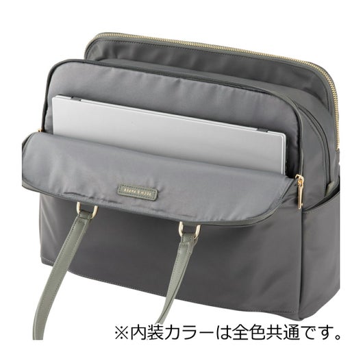 ノートPCの持ち運びに最適な、優秀お仕事バッグシリーズ 「ラポルテム」テレワークと出社を組み合わせたハイブリットワークに最適なトートバッグです。スーツスタイルやオフィスカジュアルスタイルに最適なきれいめなデザイン。整理整頓しやすい3気室に分かれたおつくりです。13.3インチのノートPC、A4ファイルが入るサイズ感。モバイル周辺機器やファイル類、ポーチ、お弁当箱など女性の通勤に必要なアイテムをしっかり収納可能です。
