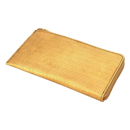 百合の花を思わせ繊細な模様が透かし彫りのビジューのように美しい仕様。きらめきのある箔加工をした牛革に手作業でムラをほどこしました。