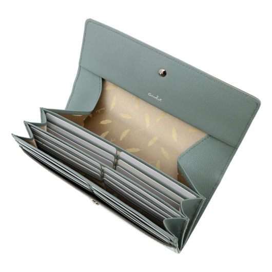 キッド(仔山羊革)特有の肌目を生かす為、透明感のある染料を丁寧に重ね、 繊細なグラデーションを表現。エナメル加工を施すことで、一層の奥行きが生まれています。