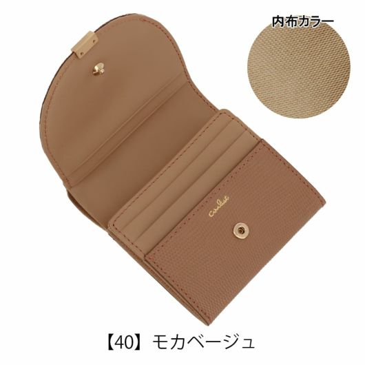 ローマ神話に登場する月の女神の名前に由来する「ルナ」シリーズ。満ちてゆく半月の円弧をイメージしたフラップに、小さなくわえ金具を付けました。つややかなリザード型押しは、上品な輝きを放ち、また傷が付きづらいのも特長です。
