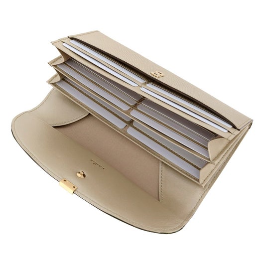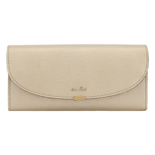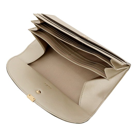 ローマ神話に登場する月の女神の名前に由来する「ルナ」シリーズ。満ちてゆく半月の円弧をイメージしたフラップに、小さなくわえ金具を付けました。つややかなリザード型押しは、上品な輝きを放ち、また傷が付きづらいのも特長です。