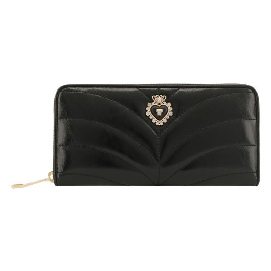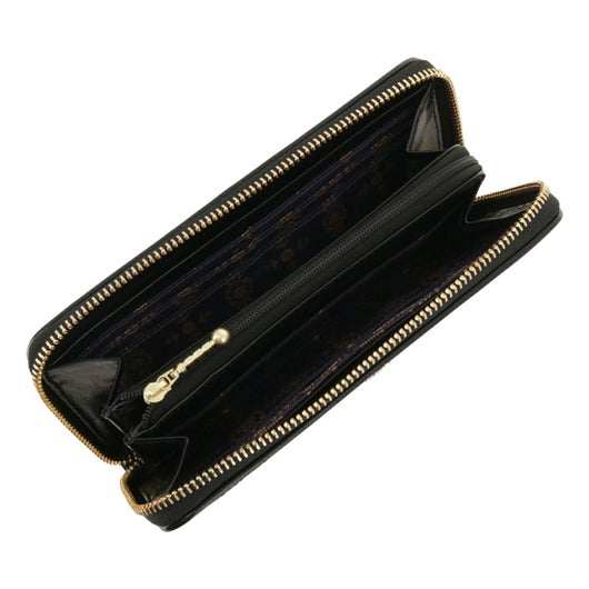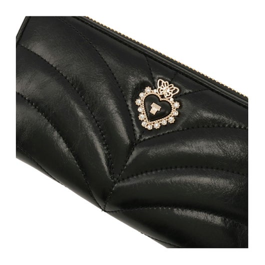 艶のあるレザーにステッチを効かせたクラシックな印象の「ポワロ」シリーズ。ブローチはブラックハートとバタフライを合わせた大人可愛いデザインです。使用している革は、傷も目立ちにくく扱いやすいのもポイントです。デザインに合わせて内装もゴールドプリントのクラシックな裏地にしています。