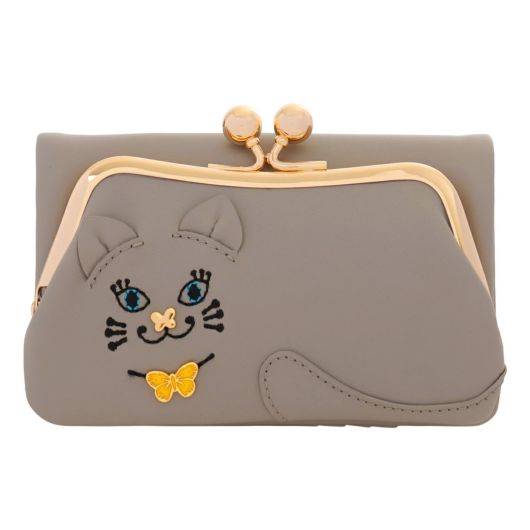 ふわっと柔らかなソフトレザーで仕立てられたシリーズ「TITIソフト」。猫の顔を大胆にレイアウトしたデザインに、さりげなく施された蝶のモチーフがアクセントとなり、見るたびに心が和むデザインです。ぷっくりとした立体刺繍と控えめなツヤ感が特徴のソフトレザーが手に心地よくなじみ、日常使いにぴったり。フロントからひょっこり覗くティティのしっぽや耳の立体感も遊び心たっぷりで、毎日の気分を上げてくれます。コンパクトでバッグに入れやすく、収納力と機能性も備えているため、デイリー使いはもちろんギフトにもおすすめです。
