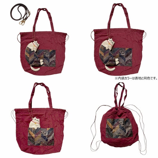 中には大容量のリュックトートが入っており、可愛らしい見た目で荷物の多くなる日には欠かせない頼りになる相棒です。付属でショルダーが付いており、ちょっとしたお出掛けの際にぴったり。中のリュックトートを取り出して使えば、サコッシュやポーチとしても使えます。また、ぬいぐるみにはボールチェーンも付属しているのでバッグチャームとして一緒にお出かけもできます。