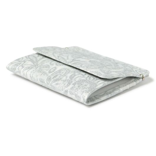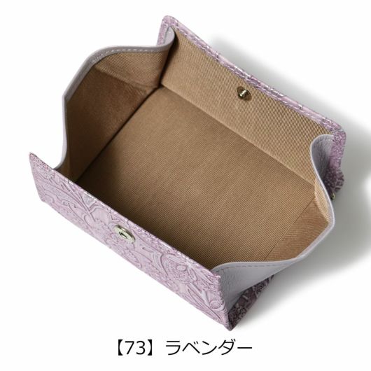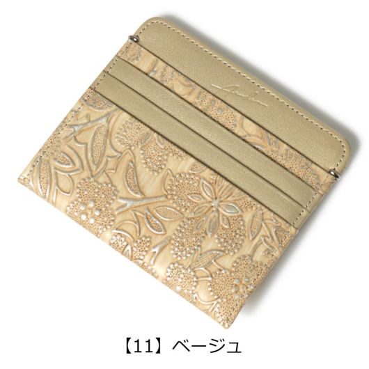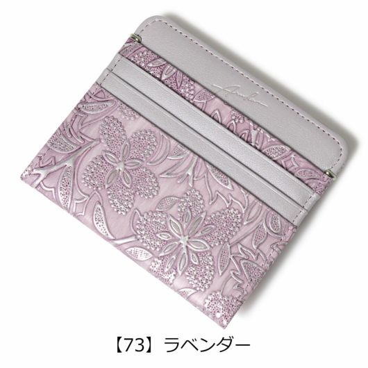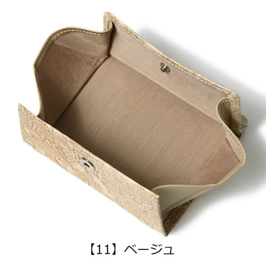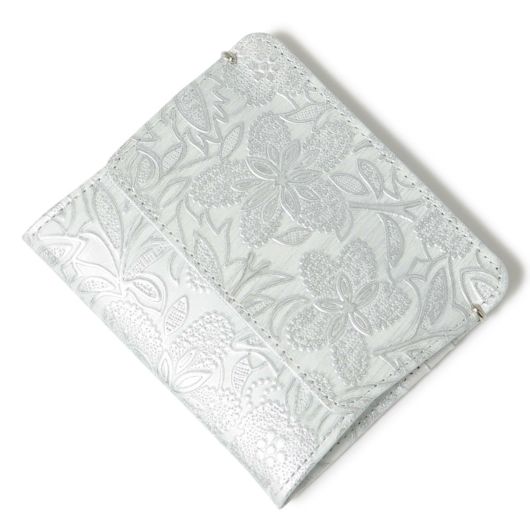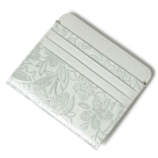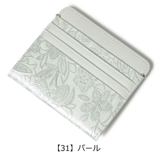 イタリアで丁寧に作られた型押し革。繊細でパールの輝きがある花柄は持つ人の女性らしさを強調させます。