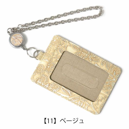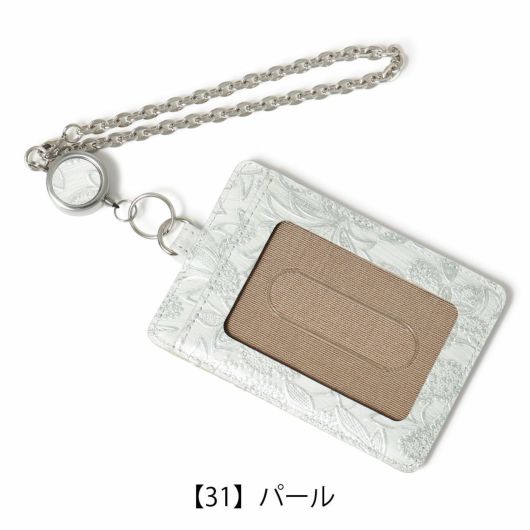 3465-311 日本製 ARUKAN | リール付き 花柄 パール 型押し エンボス 牛革 レザー
