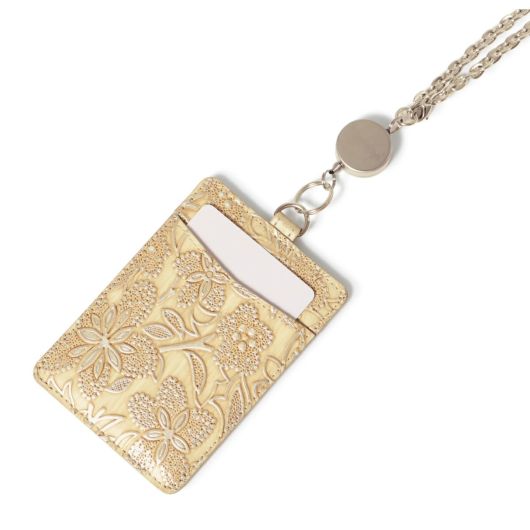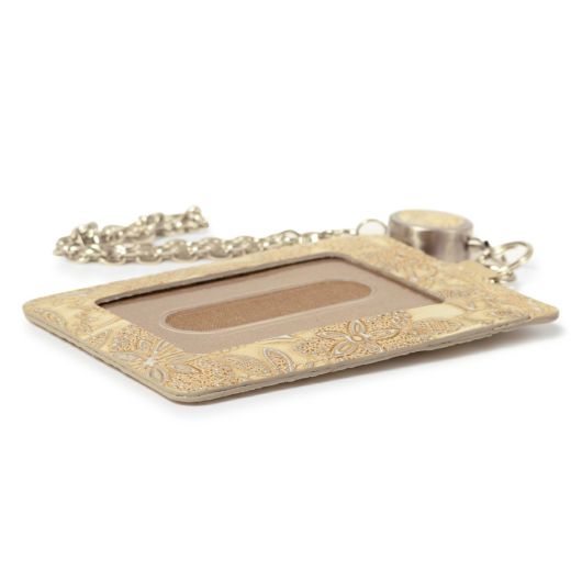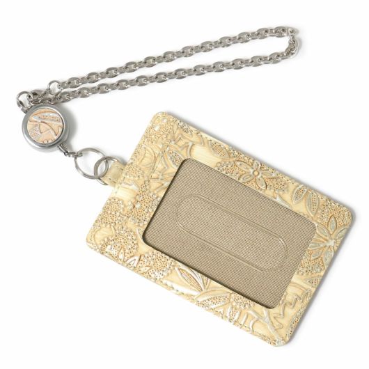 イタリアで丁寧に作られた型押し革。繊細でパールの輝きがある花柄は持つ人の女性らしさを強調させます。