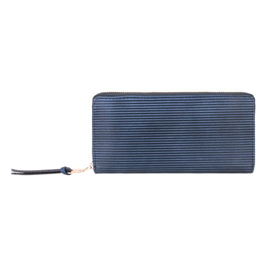 牛革藍染め加工×ストライプ型押し加工。ストライプの型押しを施し、弱めの削りを施すことで、あたたかみのある風合いを生み出しました。ほどよい濃淡の陰影が美しく、スッキリと引き締まったシャープな雰囲気に仕上げています。シンプルで欲しい機能がすべて詰まった長財布でどんなシーンでも大活躍してくれます。内側は明るい白ヌメカラーのすることで、メリハリのあるデザインに仕上げています。