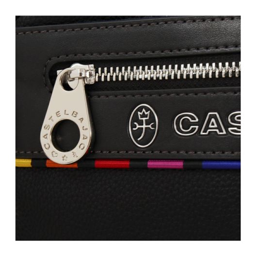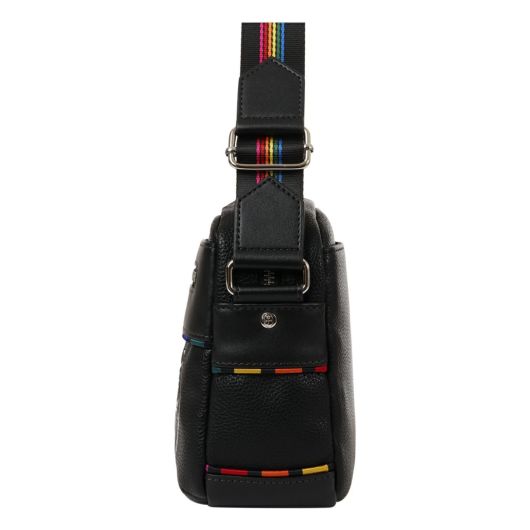 特殊なメタル表現とブランドアイコンであるマルチストライプをジャガード生地に施した「JUNE」シリーズ。シボ感のハッキリとしたシュリンク調合皮を使用。PVCをベースにしてトップをPUで仕上げた耐久性が高く、加水分解のしにくいのが特徴。ブランドを象徴するレインボーカラーのオリジナルジャガート生地を先染の凹凸のあるグログランで織り上げ、価値観と個性をより高めます。凹み部分に金属調シリコンを埋め込む様な手法で、フラットさを表現する小技も見逃せないポイント。