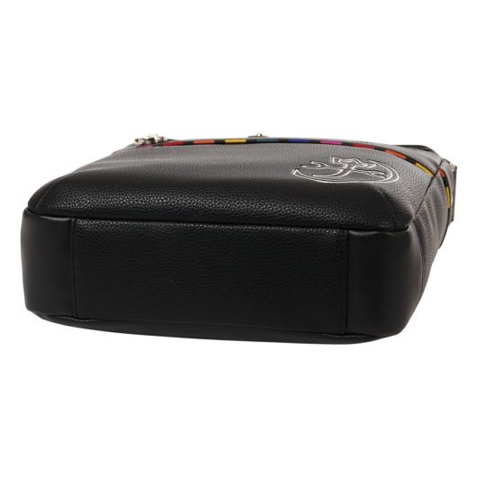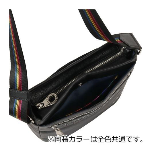 特殊なメタル表現とブランドアイコンであるマルチストライプをジャガード生地に施した「JUNE」シリーズ。シボ感のハッキリとしたシュリンク調合皮を使用。PVCをベースにしてトップをPUで仕上げた耐久性が高く、加水分解のしにくいのが特徴。ブランドを象徴するレインボーカラーのオリジナルジャガート生地を先染の凹凸のあるグログランで織り上げ、価値観と個性をより高めます。凹み部分に金属調シリコンを埋め込む様な手法で、フラットさを表現する小技も見逃せないポイント。