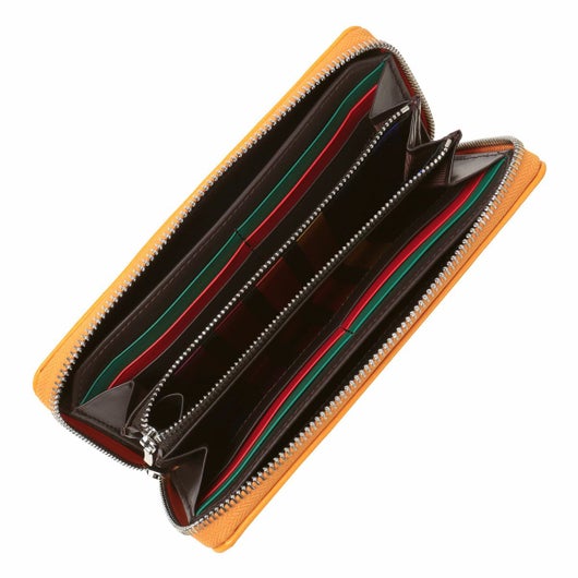 じっくりと丁寧に鞣された角シボエンボスレザーを使用し、メタルロゴとブランドカラーがポイントのベーシックな小物シリーズ。