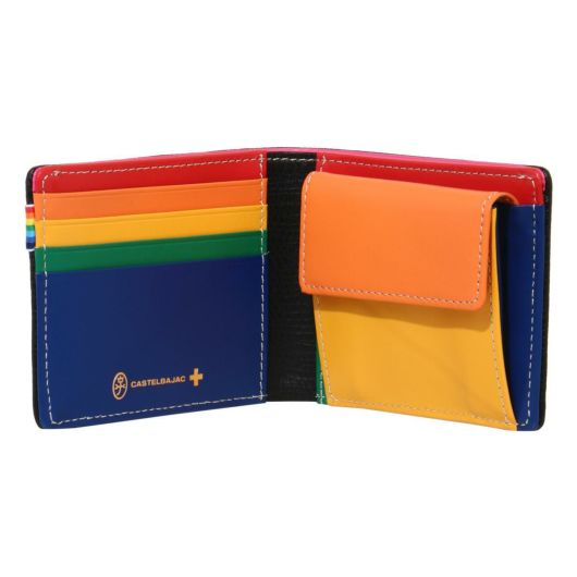 バジャックを象徴するレインボー柄で大胆に表現したユニセックス感覚のPOPな小物シリーズです。本体素材はキッシュなイメージの角シボエンボスを艶感によるツートンに仕上げた上質な質感で、内装とのギャップ感も魅力です。艶感が特徴のゴールド色のエバーブライトファスナーや、ゴールド箔押しによる家紋ロゴと、ワンポイントで使用したレインボーカラーのテープよりもバジャックらしい雰囲気を演出しています。