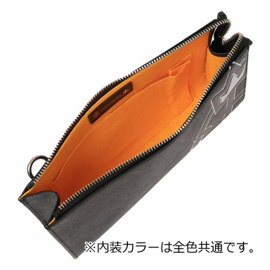 枠からはみ出たようなブランド家紋デザインが特徴の、カステルバジャックのカジュアルなクラッチバッグ。ブランド家紋の王冠部分がシルバーになっており、目を引くアクセントとなっています。さらに、丸底デザインにより持ちやすく、縁は切り目とヘリ返しを施しているため、形が崩れにくく長くお使いいただける造りになっています。