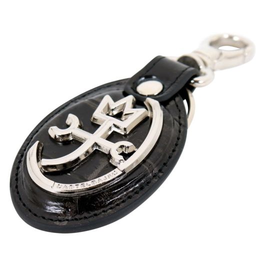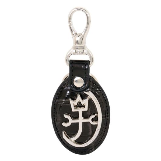 POPなカステルバジャックとは一味違う、ダンディな男性が派手に持つ小物シリーズ。本体素材には、タンニンでしっかりと鞣されたコシのある牛革を使用。そこにメタル箔を貼り、クロコの型押しを施し、色を吹き付け、その色を拭き取ることで、ビンテージ物のような深みのある生地に仕上げています。ロゴが輝くキーホルダーです。