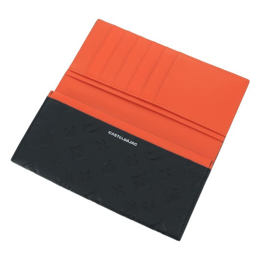 カステルバジャックのモノグラム柄をシュリンクの効いたソフトなレザーにしっかりと型押しした素材を使用。