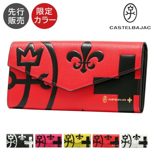ビビッドカラーのレザーに、大きなロゴが印象的なカステルバジャックのかぶせタイプの長財布。カードが12枚収納できる大容量仕様になっています。シックなモノトーンから、気分の上がるビビットまでカラーバリエーション豊富に取り揃えました。