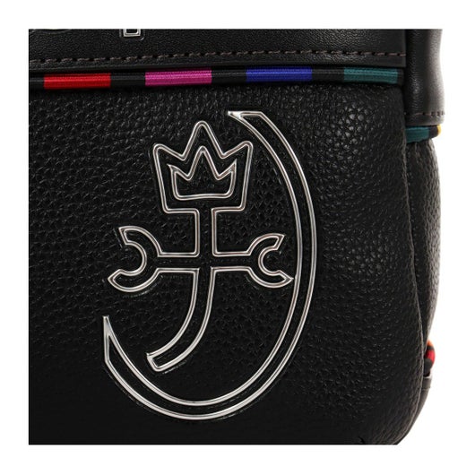 特殊なメタル表現とブランドアイコンであるマルチストライプをジャガード生地に施した「JUNE」シリーズ。シボ感のハッキリとしたシュリンク調合皮を使用。PVCをベースにしてトップをPUで仕上げた耐久性が高く、加水分解のしにくいのが特徴。ブランドを象徴するレインボーカラーのオリジナルジャガート生地を先染の凹凸のあるグログランで織り上げ、価値観と個性をより高めます。凹み部分に金属調シリコンを埋め込む様な手法で、フラットさを表現する小技も見逃せないポイント。