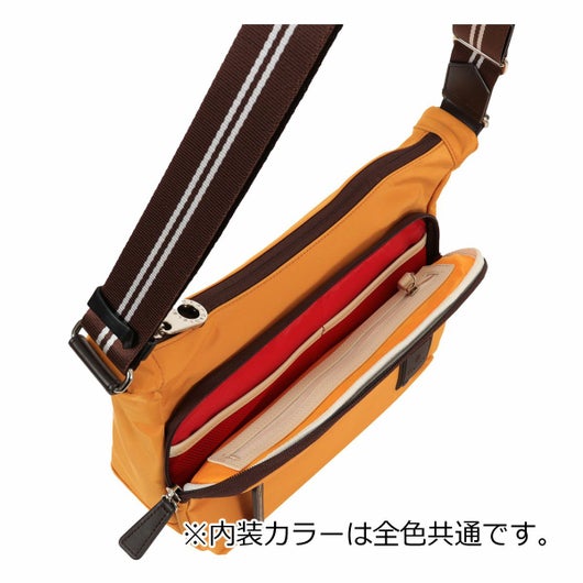 本体素材は上品な光沢感と程良いボリューム感が魅力の高密度ナイロンツイル、付属素材も加水分解しにくい特殊なPU素材です。シリコンワッペンネームやナイロン素材のラインテープでブランド表現し、汎用性の高いシンプルなデザインです。