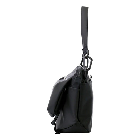 全体的に革や金属のパーツを使わず、生地も機能性を保ちつつ軽量な物を使っておりますので、軽量な仕上がりになっております。本体は肩掛け様ベルトとショルダーベルトが付属しており、用途に応じて使い方を変える事が可能です。