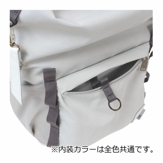 ポリマー状態で染色した糸(原着糸)により色の一貫性、耐光堅牢度を高めたSatura Max(TM)を使用しておりオットマン織(平織とバスケット織を組み合わせた織)を採用することにより、強度、耐久性も備えたファブリックとなっております。仕上げには Hydro Max(TM)加工を施しており、通気性と生地の安定性を保ちながら、高い撥水性を備えております。付属のキーホルダーとコラボレーションネームにはベジタブルタンニン鞣しのレザーに蓄光塗料を塗布する事により、昼間太陽の光を集める事により暗いところ等で発光する様になっております。