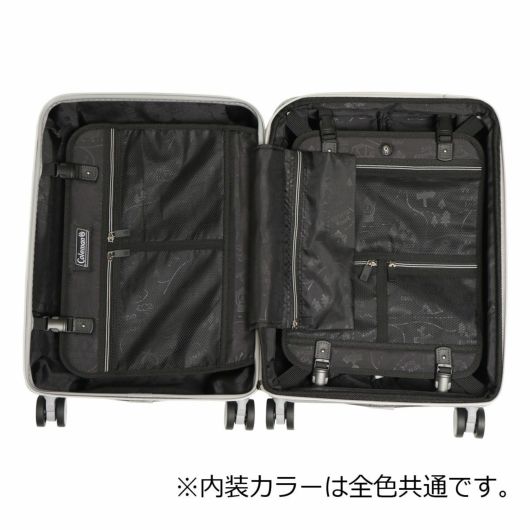 ワンプッシュで引き伸ばせる伸縮ハンドルは身長や持ち運ぶ状況に合わせて調節可能。内装生地はColeman BAGで使われているMAP柄を使用しております。