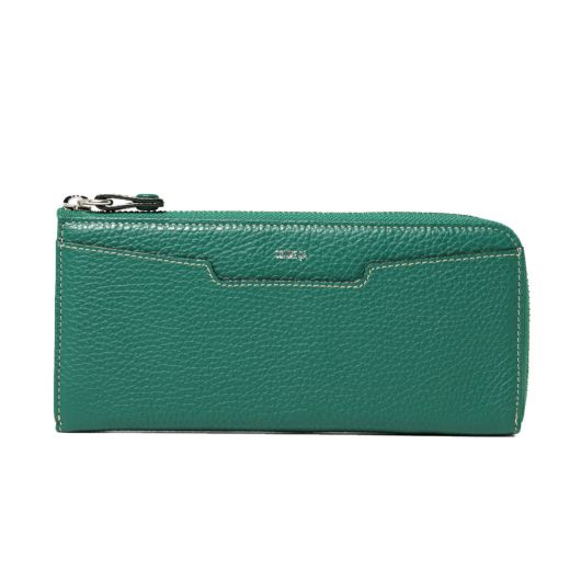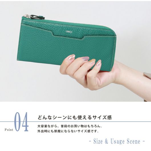 シュリンク型押(イタリア産)でしっかりと立体感を付け、イタリア産ならではベース処理技術と味出し加工によりソフトさを生かした仕上がり。内面にはトープ色を使ったクリーンなカラーコンビも特徴です。