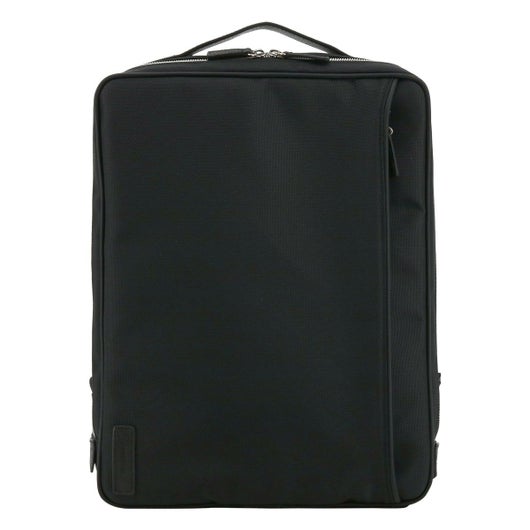 スタンダードで使いやすいスクエアフォルムのリュック。トップとサイドに持ち手があるので、背面のテープにショルダーストラップを固定すればブリーフバッグのように持てる2WAY仕様。本体のファスナーを全開するとト