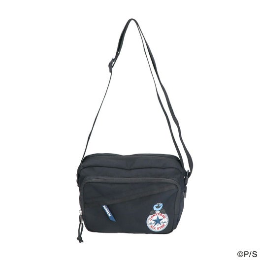 コンバースのアンクルパッチロゴから覗くスンスンが可愛いスペシャルアートの刺繍が印象的なデザインのミニショルダーバッグです。本体背面にはコンバースオールスターに入って手を振るスンスンのイラスト織りネーム、本体直通のサイドファスナーに表裏でそれぞれのロゴが入ったファスナー引手テープ、本体内側のコラボアートプリントネームなど、普段使いしやすいシンプルで控えめなデザインながら、特別コラボアートが随所に施された特別感ある仕上がりになっています。本体生地は絶妙な光沢感の軽くて丈夫なポリエステルキャンバス素材を採用。コンパクトで使いやすいスクエア型のショルダーバッグは、しっかりとマチ幅があり見た目以上の収納力で500mlのペットボトルもすっぽり収納することが出来ます。背面にはスマホを収納するのに便利なスマホスリーブ付き。本体正面には二層のファスナーポケットと、本体内側に内容物がわかりやすいメッシュポケットがあるので、細かいものを整理して収納することが出来ます。コンパクトながら収納力があり、男女兼用でお使いいただけるちょうど良いサイズ感で、普段のちょっとしたお出かけから、レジャーやトラベルシーンまで様々なシチュエーションでご使用頂けます。