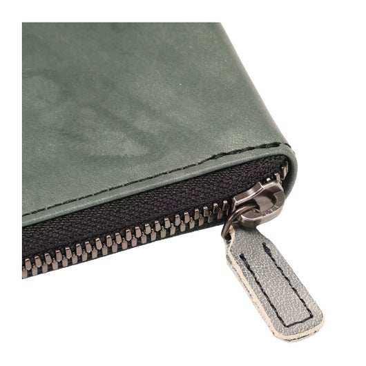 室町時代に活躍した水墨画家、雪舟の水墨画をオマージュしたムラ染めの革を使用。 本来、革の染色では色ムラを出さないようにするが、あえて色ムラを出すという遊び心から生まれた、他の革とは一線を画す革。 革の染色歴40年の職人が染料の投入量・色・太鼓の回転数・タイミングに 試行錯誤を重ね作り上げた大量生産が難しい逸品。