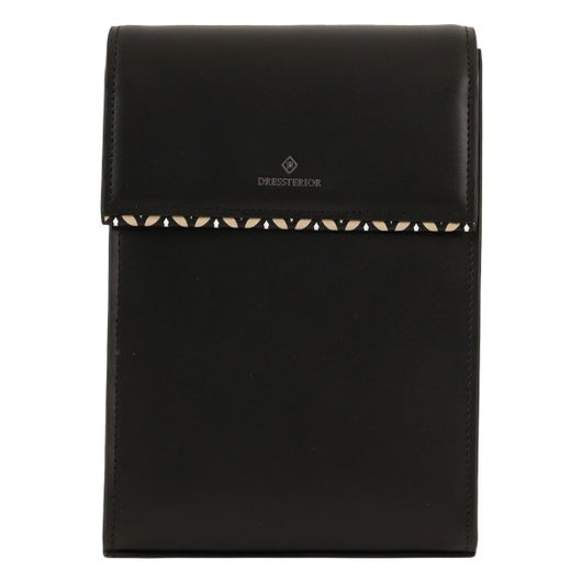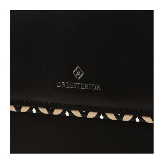 本体素材には厳選されたキップ調牛革を使用しています。さらさらとしたタッチ感ときめ細やかな肌目が特徴です。フラップ先と裏側にはDRESSTERIORの象徴【オーバーラップサークル】をプリントした牛革を使用しています。