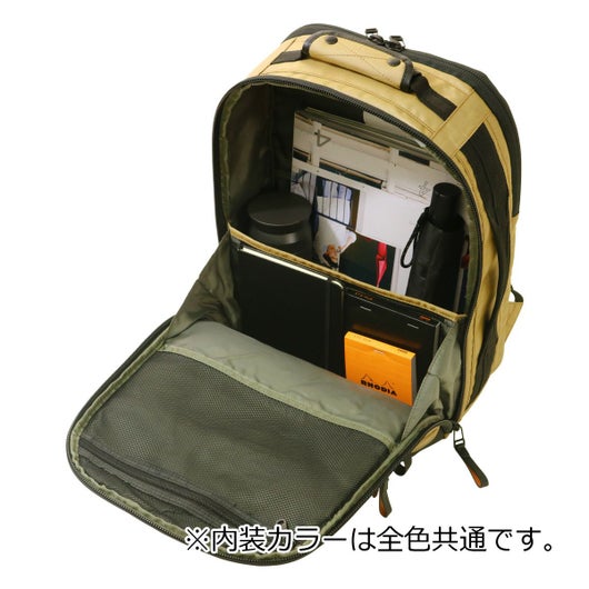 メインファブリックにはオリジナルマテリアルのMOONLIGHT FABRICを使用しています。縦横の糸に異なるカラーを使用することで光の反射や角度によって様々な表情を見せる素材になります。生地の裏面にはGBP加工を施すことで適度なハリ感と耐水性をUPさせております。付属のレザーは上質なイタリアンレザーを使用しファスナープルは2枚合わせでボンディング加工をするなど丁寧に仕上げております。高度な技術がいる立体的なパターンの組み合わせのより表現できる考えられたシルエットは使用したときにスッキリとした印象を与えてくれます。ガジェット対応ポケットや横持ちスタイル、キャリーバックにセットアップなど様々なシーンに対応できます。