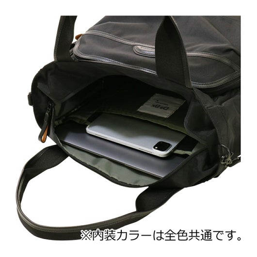 メインファブリックにはオリジナルマテリアルのMOONLIGHT FABRICを使用しています。縦横の糸に異なるカラーを使用することで光の反射や角度によって様々な表情を見せる素材になります。生地の裏面にはGBP加工を施すことで適度なハリ感と耐水性をUPさせております。付属のレザーは上質なイタリアンレザーを使用しファスナープルは2枚合わせでボンディング加工をするなど丁寧に仕上げております。高度な技術がいる立体的なパターンの組み合わせのより表現できる考えられたシルエットは使用したときにスッキリとした印象を与えてくれます。クッション材入りのハンドルとショルダーストラップが体にかかる負担を軽減してくれます。