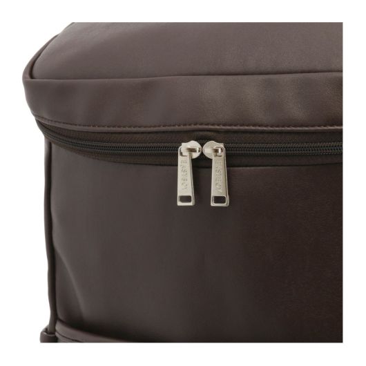 上質な合成皮革で作られたリュックは持つ人をグレードアップさせてくれます。女神刺繍とロゴチャームがポイント!