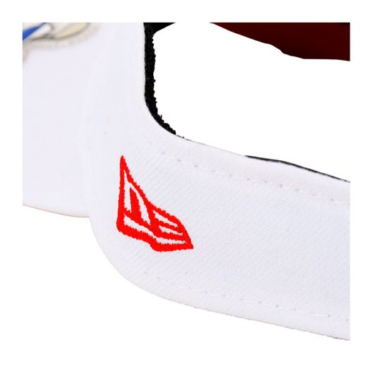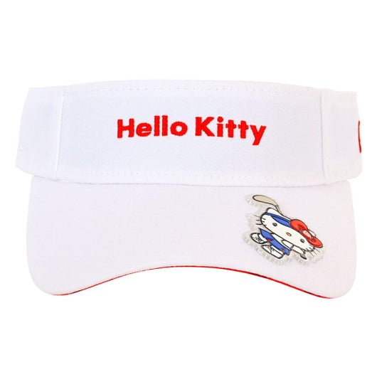 ハローキティとのコラボレーションコレクション。本コラボレーションのために描き起こされたニューエラキャップをかぶったハローキティ、ハローキティのアイコンでもあるリボンやりんごモチーフとニューエラロゴを組み合わせたデザインなど、コラボレーションならではのデザイン。バイザーを通常より10mm長い仕様にアレンジしたサンバイザー。日光の遮蔽効果に優れています。リアのベルクロストラップで頭回り約52cmから55.8cmまでサイズ調整が可能です。
