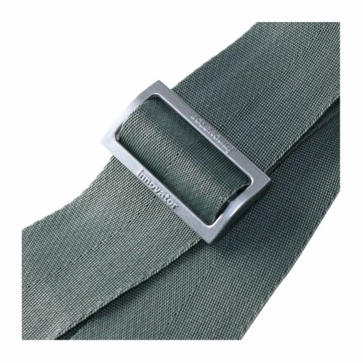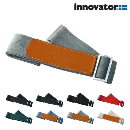 イノベーターロゴが入ったレザーを使用。マジックテープタイプで脱着スムーズ!アルミ素材のバックルは預け入れの際の衝撃にも強く作られています。
