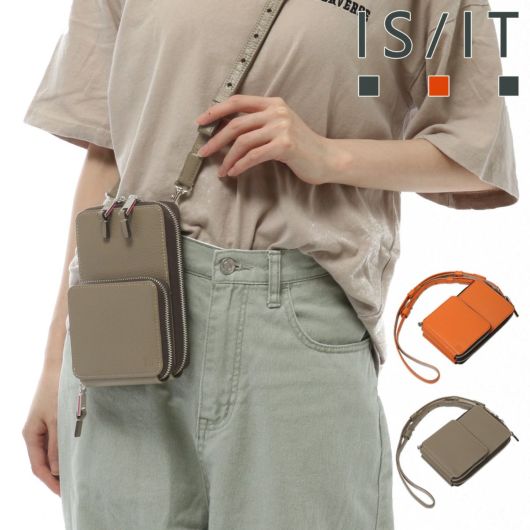 カードや小銭などが安心して収納できるよう、お財布機能を搭載したイズイットのミニショルダーバッグです。カード段や小銭を入れるファスナーポケットなど、これ1つでお出かけができるようなデザインに仕上げました。また、スマートフォンを収納するために、内装生地にはソフトな起毛素材を採用しています。