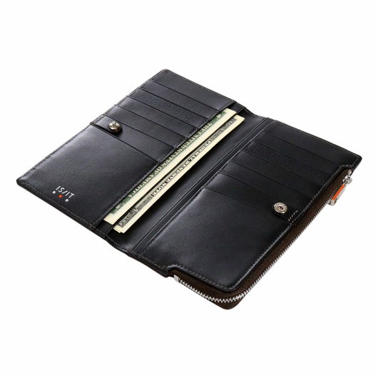 発色の美しいイタリアンレザーを参考にした、鮮やかなカラー展開が魅力のコンパクトな長財布。ジェンダーレスなデザインを意識し、個性的で汎用性の高いダブルエンボスレザーを使用しています。