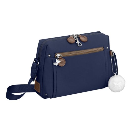 シャリ感のある素材がスタイリッシュな、普段使いしやすいカジュアルテイストの多機能バッグ。