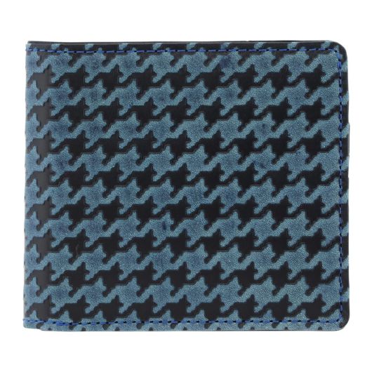 日本古来から続く藍染技術によって生み出された革は「JAPAN BLUE」と称され、その奥深い藍の趣きは一度見たら誰もが虜になります。染色の回数を重ねることで深みが増しとても綺麗な紺になり、その革に市松模様や千鳥格子など、日本伝統の吉祥柄(縁起が良い柄)を型押しした非常に手の込んだシリーズです。