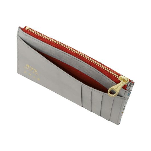 友禅文庫の革は、純白の本革を、伝統工芸士の指導の下、熟練された職人に手によって、細かく繊細な柄を一筆一筆ていねいに染め上げられた文庫革を使用しております。匠の技が光る美しく優美な染め上がりとなっております。