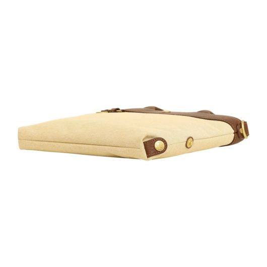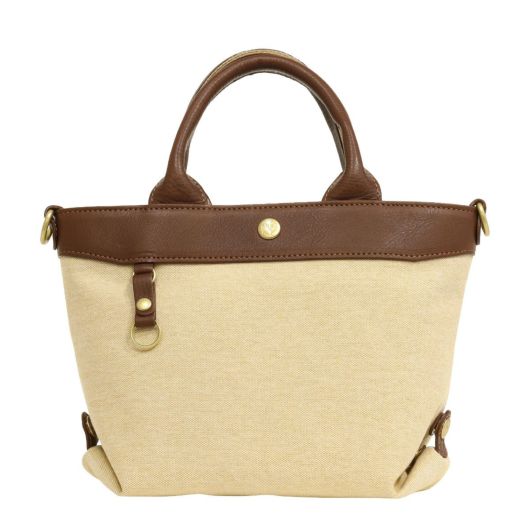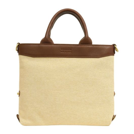コットンシャンブレー素材に牛革を付属したシリーズ。シャンブレーとは、先染めした色糸をタテ糸に、白い糸をヨコ糸に使用し、平織した生地のことで、布の表面に霜降りのようにポツポツと白糸が現れることで上品さを演出している素材です。