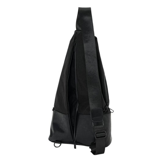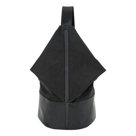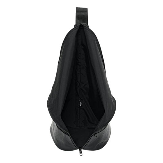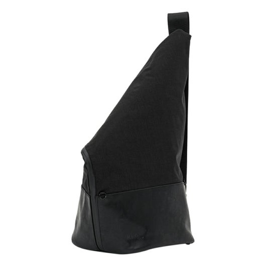 大胆なシルエットが唯一無二のワンショルダーバッグ。上部を折り返したようなユニークなデザインが視線を奪い、立体的なフォルムがスタイリングに新たなアクセントを加えます。通常のナイロンと比べて摩擦に強く丈夫で軽量なコーデュラナイロンに本革にも見劣りをしないヴィーガンレザーの艶感をプラスした異素材のコントラストが、上品さと抜け感を同時に叶えます。