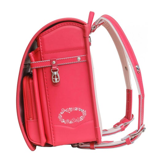 淡いペールトーンのカラーリングに、エレガントな花冠をイメージした白い刺繍がサイドに入ったオシャレなランドセル。簡単に開閉できる「くるピタ」錠前を搭載!かぶせのふちや背板ふち全体に反射を付けた「安ピカッ」機能を装備しライトの反射で認識されやすく安全性を高めます。「フィットちゃん」背カンで快適に通学できます!