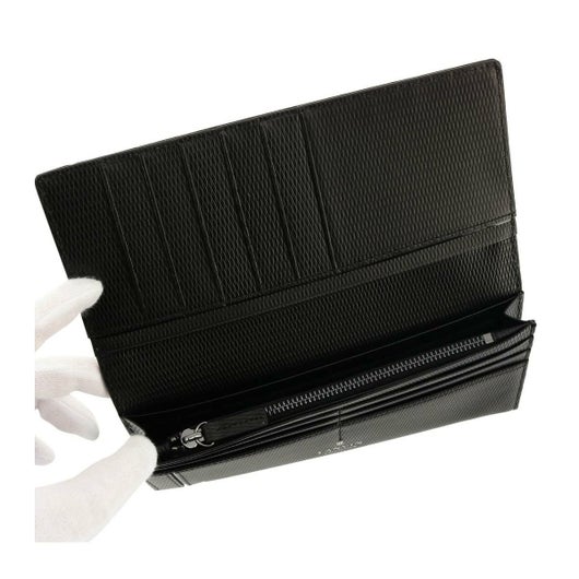 良質なレザーにエンボス加工を施しました。光沢のあるガラスレザーをライン状に切り替えをしたデザインで、ランバンコレクションらしいシャープな仕上がりとなっています。シンプルで機能性も兼ね備えた長財布でギフトにもおすすめです。表のメタルのログマークがさりげないポイントになっています。