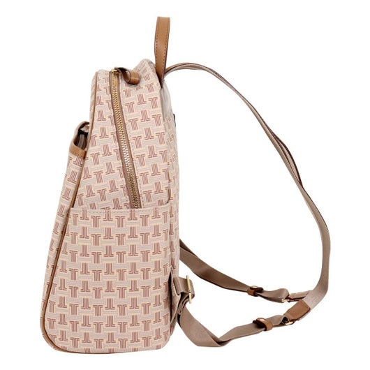 ブランドロゴを総柄で落とし込んだキャッチーなシリーズ“フェリア”。フェミニンスタイルにもよく似合うリュックサックです。バイカラーのレザーパネル部分がアクセントとなって、全体を上品に引き締めています。お買い物やデート、普段使いのカジュアルシーンはもちろん、ビジネスシーンでも活躍してくれる、使い勝手の良さが自慢の1品。