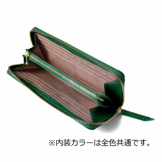 凹凸の少ないやさしい雰囲気のクロコ型押し牛革を使用したベーシックでエレガントなお財布です。
