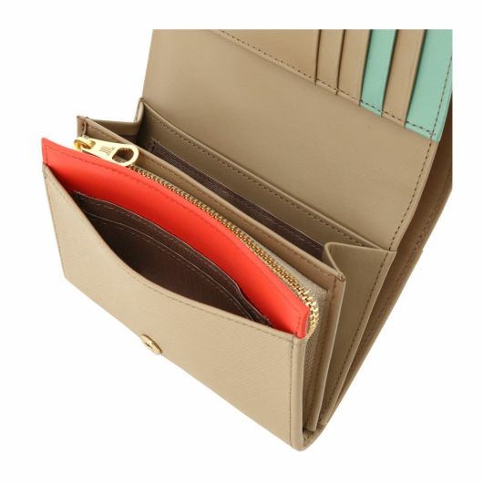 型押しした牛革でシンプルにロゴだけでまとめたライン。鮮やかなカラー展開です。中づくりのポイントカラーが目を引くシリーズです。