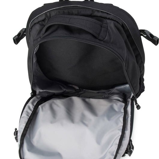 大容量多機能リュック3層になって前面は携帯、ペン入れ、鍵ホルダーと機能が一杯、肩ベルト部、前面部に反射材付で安全面もばっちりでレインカバー付です。